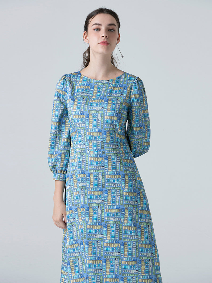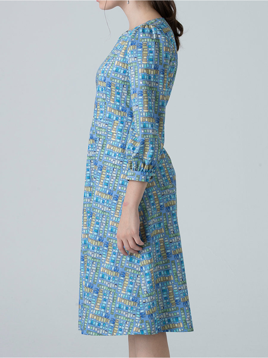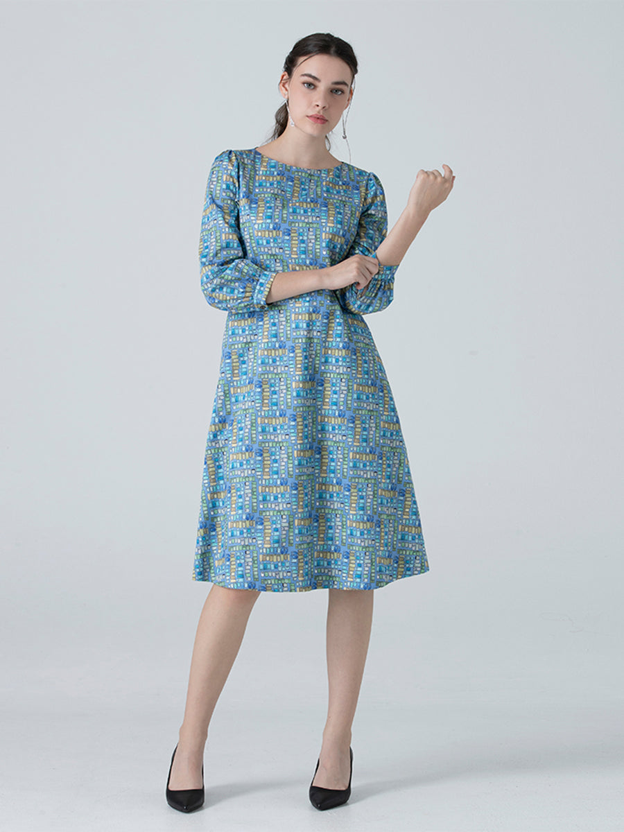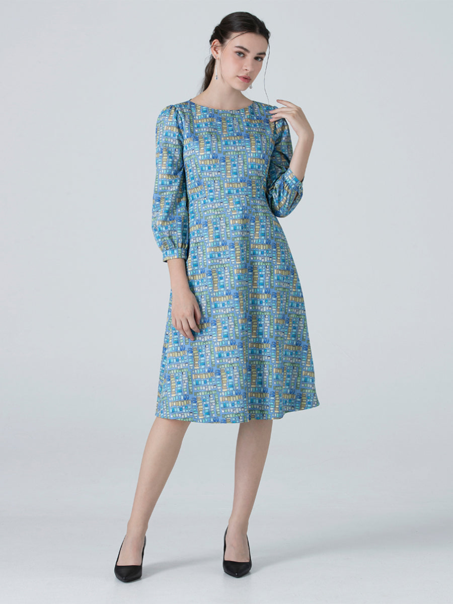 DAKS ชุดเดรส ผู้หญิง แขนยาว ทรง Regular Fit สีฟ้าอ่อน